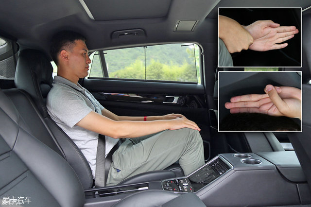 将驾驶座调整至最低后,身高184cm的体验者可以获得一拳的头部空间。对于Panamera这种有跑车味道的行政级轿车,这个位置往往坐着这辆车的主人,所以座椅记忆、加热、通风等功能一应俱全。