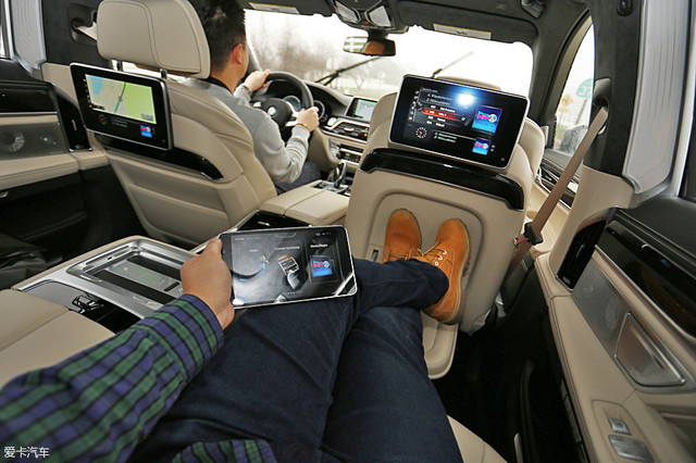 后排是M760Li除了发动机之外,最大的亮点,不仅有着超大空间、航空头枕,还配备了一块可自由拆装的控制面板,看起来类似于平板电脑,可对后排座椅包括按摩和娱乐在内的各种功能进行调节。
