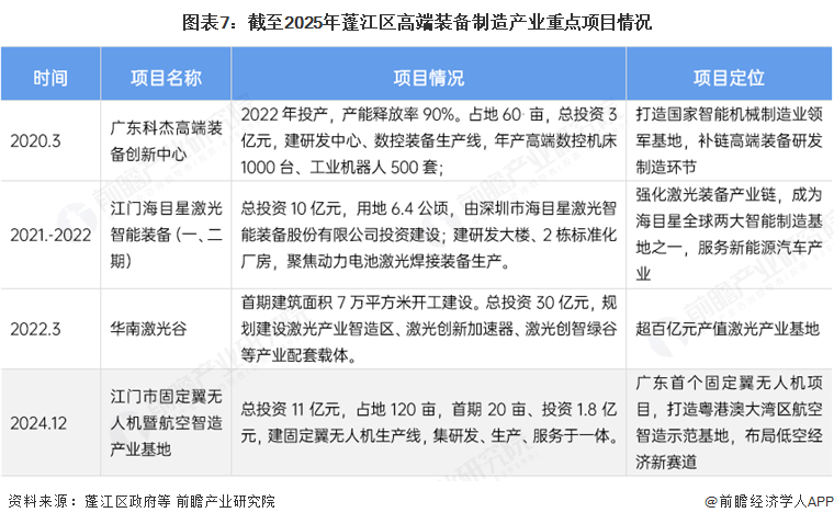蓬江区不断发挥区位优势,优化产业营商环境,吸引上下游企业集聚发展。近年来,新落地广东科杰高端装备创新中心、江门海目星激光智能装备、华南激光谷项目、江门市固定翼无人机暨航空智造产业基地等多个高端装备制造产业重点项目,产业规模不断壮大。