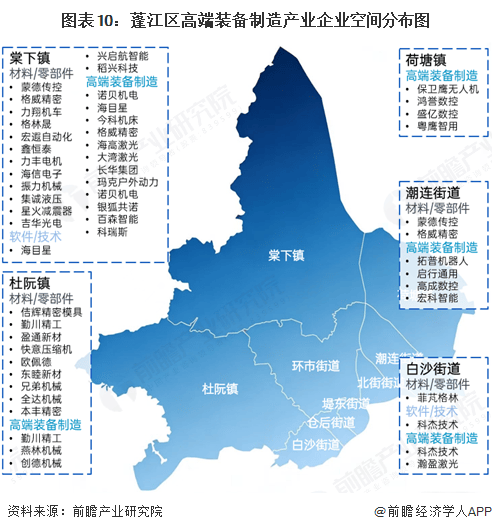 据规划与产业发展现状,蓬江区高端装备制造产业呈现“一核多点”空间体系。棠下镇为核心引擎,依托蓬江产业园承载整机制造与系统集成;杜阮镇、荷塘镇等为多点拓展,杜阮主攻机器人及深圳产业转移,荷塘主攻临港配套及区域协同;环市、潮连、白沙承担应用配套、科技金融、都市服务职能。各镇(街)功能互补、错位发展,将形成“整机带动、配套跟进、全域协同”的产业链布局格局。