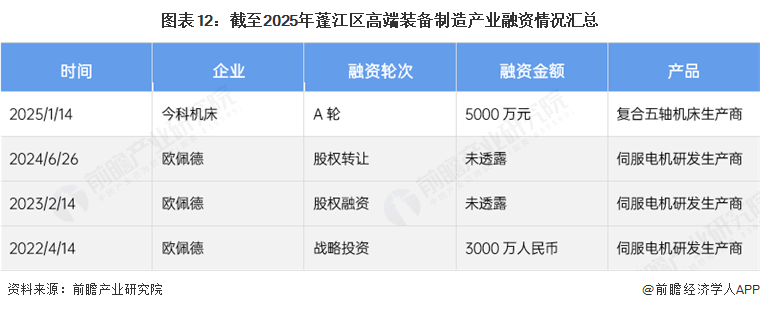 从蓬江区高端装备制造产业融资情况来看,截至2025年,其产业融资活跃度一般,主要以龙头企业的股权融资事件为主。