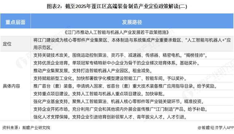 从蓬江区高端装备制造产业发展载体来看。蓬江区高端装备制造产业载体呈现“一核引领、多点协同”的空间格局。“一核”即蓬江产业园(棠下片区),作为国家级新型工业化产业示范基地和省级智能制造示范基地,是产业核心承载区,集聚海目星、科杰技术等龙头企业,2024年实现规上工业总产值近550亿元。多点即启动区东西片区、华南激光谷等专业园区,其中华南激光谷聚焦激光与增材制造全产业链。